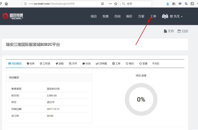 3. 選擇右上角導航欄目 工單