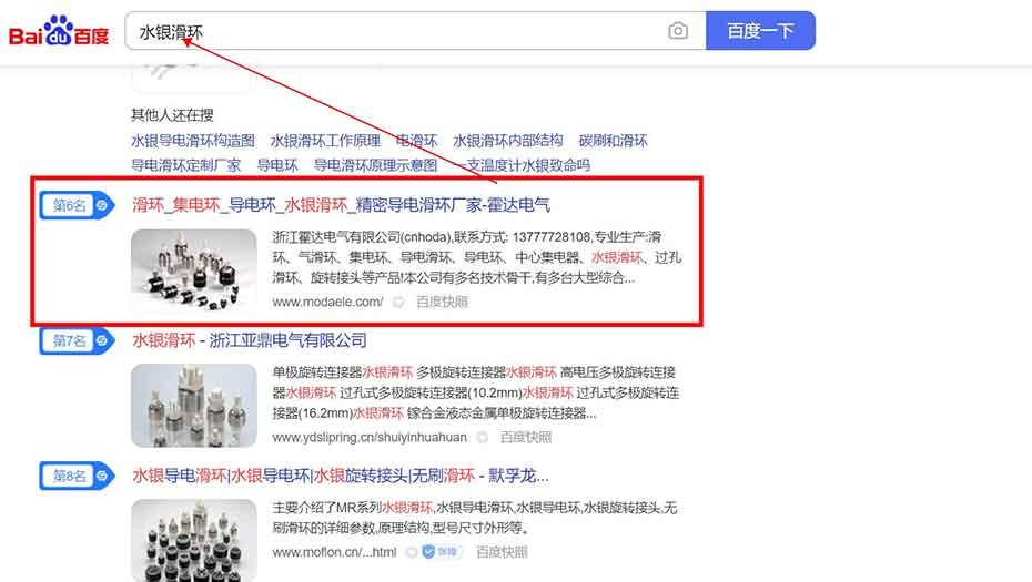 盛世傳媒為霍達(dá)提供了滑環(huán)相關(guān)的關(guān)鍵詞的搜索排名服務(wù)!